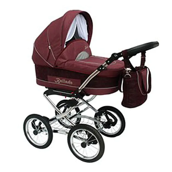 Красивое хромированное шасси коляски оборудовано большими колесами и системой пружинной амортизации, что обеспечивает коляске превосходную проходимость и плавность хода. Маневренностью эта коляска похвастаться не может, поскольку передние колеса не вращаются на 360 градусов. Но если Вам нужен настоящий детский внедорожник, то эта коляска как раз то, что Вы ищете.