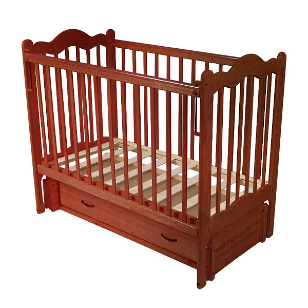 Детская кроватка Счастливый Малыш Дюймовочка оснащена продольным маятниковым механизмом, позволяющим убаюкать младенца за считанные минуты. Если данная функция станет ненужной, ее можно заблокировать. Необходимую мобильность колыбели Счастливый Малыш Дюймовочка дарят две пары маневренных колес с фиксаторами. Основание конструкции изготовлено из отдельных реек, обеспечивающих ортопедический эффект.