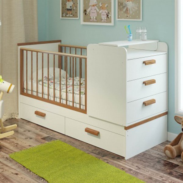 • трансформируется в подростковую кровать путем снятия комода и кроватки.