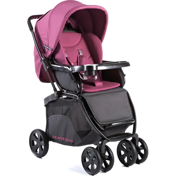 Коляска имеет отстегивающийся ограничительный столик с углублением для бутылочки или стакана.
