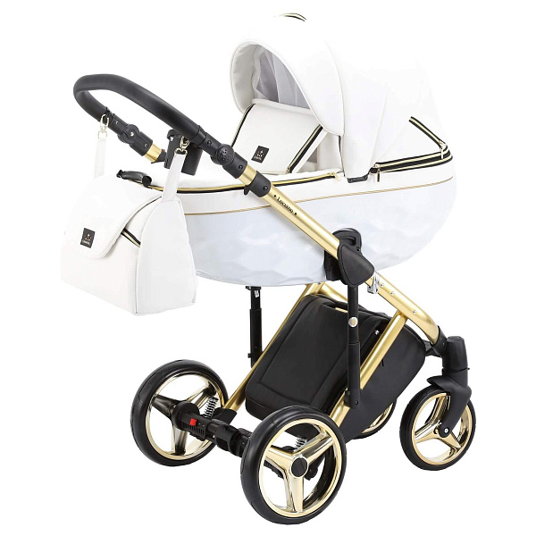 Особенность шасси — крепкая рама из алюминиевого сплава, которая оснащена новейшей системой амортизации. Амортизаторы стоят на всех колесах и по центру рамы. Колеса удобные, выполнены из вспененной резины, а потому не требуют подкачки и повышенного к себе внимания. Передняя пара колес поворотная, ручка для родителей регулируется по высоте. Продуманная комплектация коляски SE позволяет родителям совершать незабываемые прогулки с малышом!