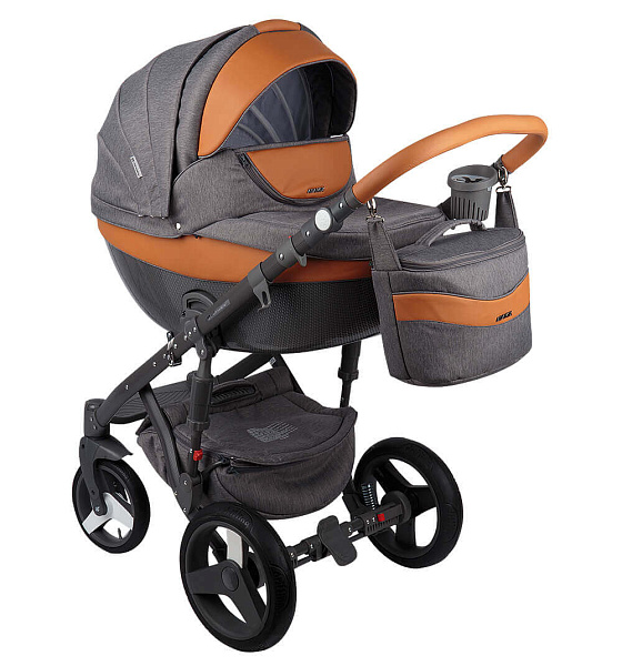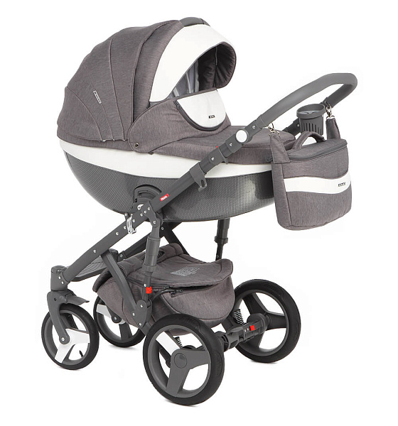 Польская марка Adamex представляет модель Monte, которая функционально вторит всем современным модульным коляскам этого производителя, а выделяется карбоновым корпусом люльки. Другие плюсы коляски — двойная амортизация, вентиляционные окошки в капюшонах двух сменных блоков, колеса, произведенные по современным технологиям из вспененной резины, не требующие подкачивания и дополнительного обслуживания.