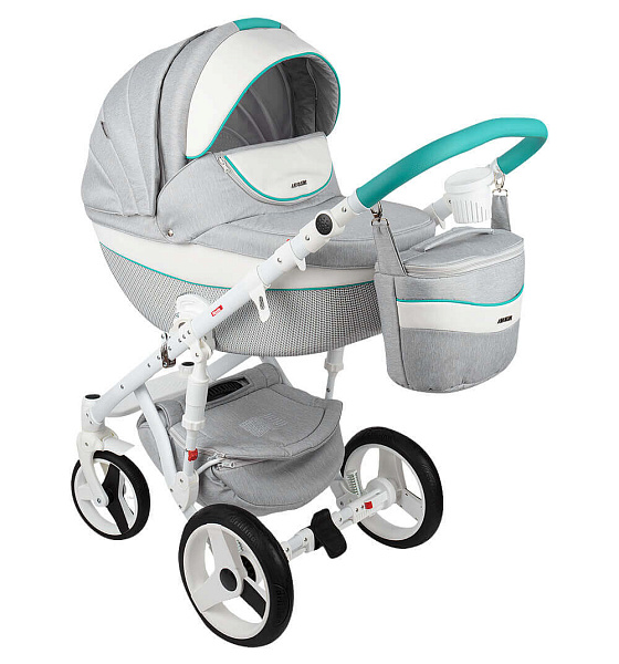 Дополнительные аксессуары к коляске «Адамекс Монте» - сумка-рюкзак, муфты-варежки, дождевик, две сетки от насекомых, подстаканник, пеленальный матрасик.