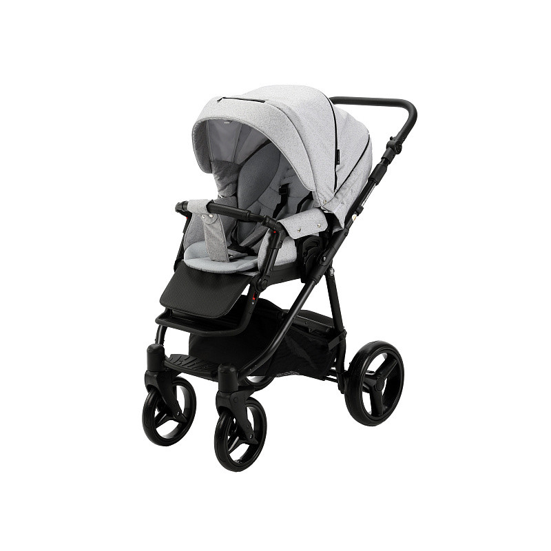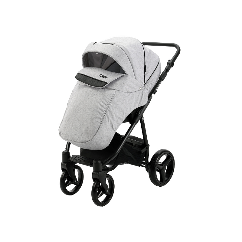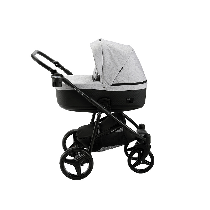 Люлька в коляске пластиковая. Наружная ткань и экокожа надежные и влагостойкие, не боятся выгорания на солнце. Изнутри спальный модуль полностью обшит хлопковой тканью. Обшивка снимается и хорошо отстирывается в режиме деликатной стирки. Еще один плюс хлопка — его гипоаллергенные свойства. Капюшон большой и надежный, препятствует проникновению внутрь ветра и осадков. В капюшоне встроен дополнительный отсек с москитной сеткой. Имеется утепленный чехол с высоким отворотом с дополнительной защитой. Подголовник приподнимается, есть система вентиляции для создания внутри благоприятного микроклимата летом. Дополнительная демонстрация высокого статуса и оригинального внешнего вида транспортного средства — фирменные нашивки производителя.