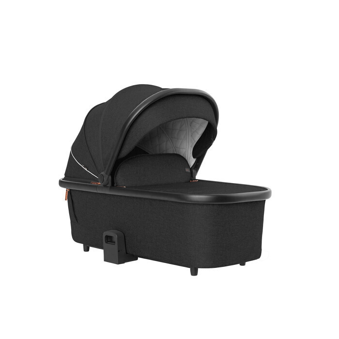 У капора люльки есть дополнительная секция, которая регулируется в четырех положениях и снабжена ручкой для переноски. Основание у спального модуля жесткое. Спинку можно установить в двух положениях — 170 и 180 градусов.