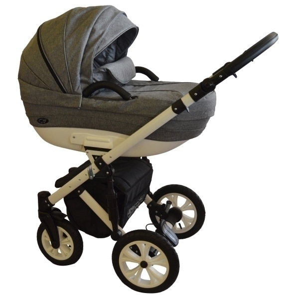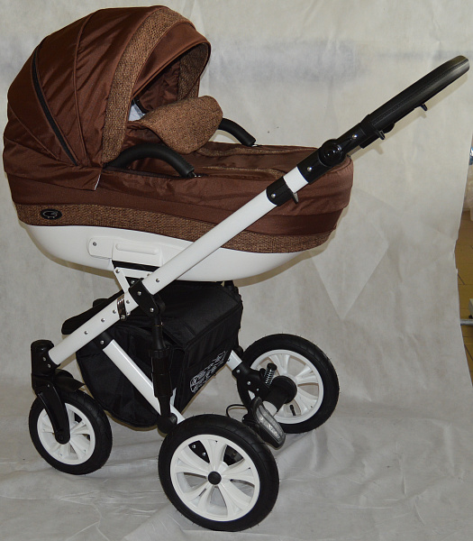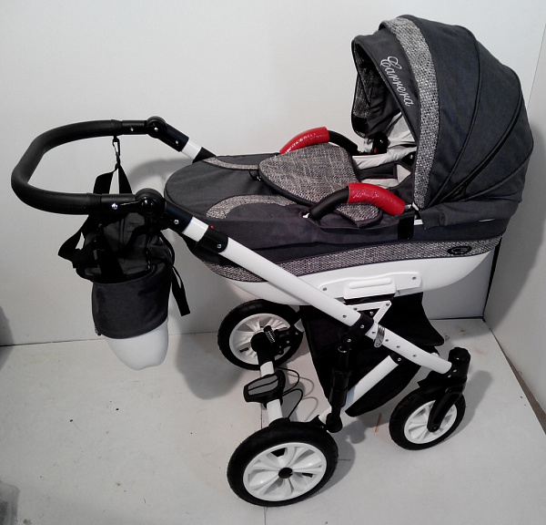 Эта легкая по весу, многофункциональная и очень практичная коляска изготовлена из полимерных экологически чистых и натуральных и материалов высокого качества из Европы. Облегченное шасси из алюминия – прочное и надежное. Большие помповые колеса в сочетании с пружинной амортизацией и удобным тормозом помогут сделать каждую прогулку в удовольствие. Родительскую ручку можно отрегулировать по высоте. Благодаря тому, что она обтянута эко-кожей, она не будет затвердевать в морозы или перегреваться под ярким солнцем: рукам взрослого будет комфортно в любую погоду. Еще одно немаловажное преимущество детской коляски Gusio Briciola Carrera 3 в 1 – наличие возможности установить сменные блоки в одном из двух направлений движения.