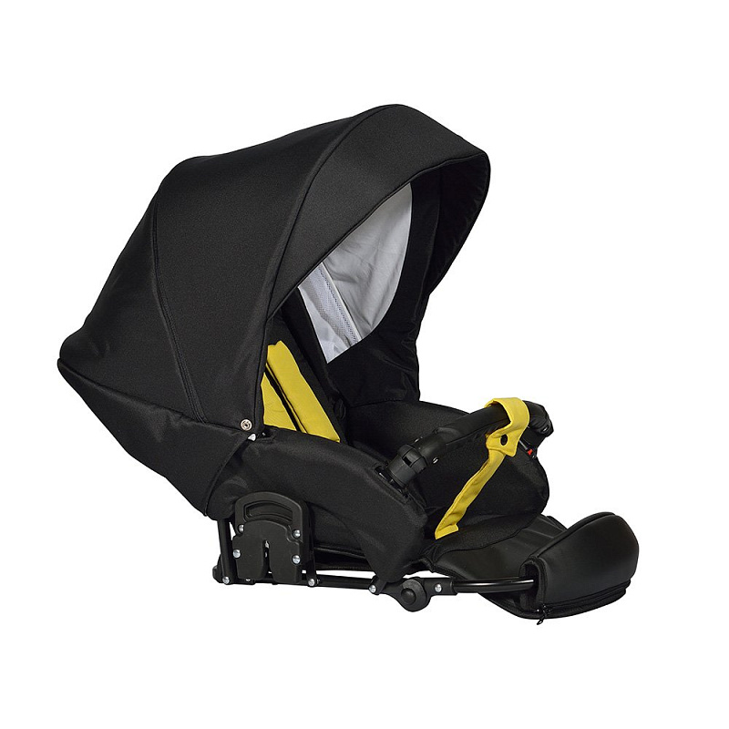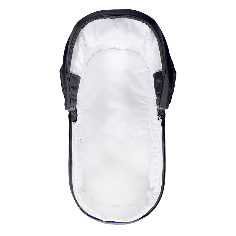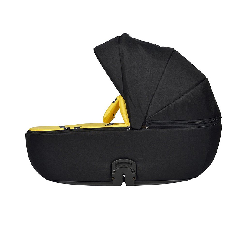 У модели два сменных модуля. Люлька предназначена для самых маленьких, оснащена большим капюшоном с бесшумной регулировкой по высоте, удобной ручкой-переноской и сегментом для вентиляции. Накидка на ножки удобно застегивается на молнию, снабжена высоким отворотом от пыли и ветра. Внутри спального блока уложен мягкий матрасик, а внутренняя обивка сделана из натурального хлопка. Снаружи люлька покрыта водоотталкивающей тканью.