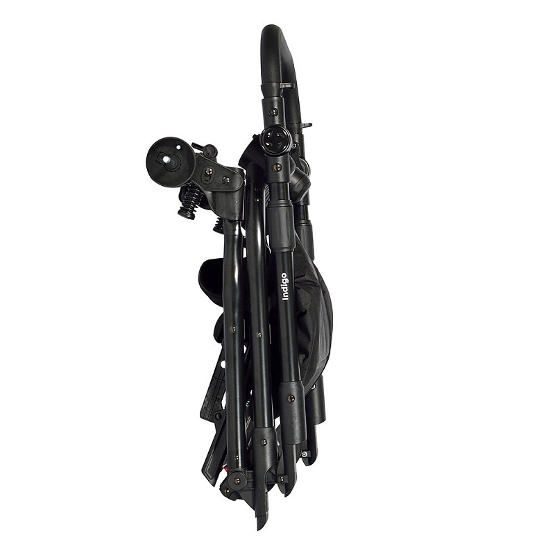 Колеса в модели «Кросс» от «Индиго» полиуретановые. Передняя пара поворотная, что дает больше маневренности на ровном покрытии. Все четыре колеса имеют амортизацию: задние — с регулировкой, передние — с системой «антишок». Корзина для вещей целиком закрывается, защищая вещи или продукты от пыли и грязи.