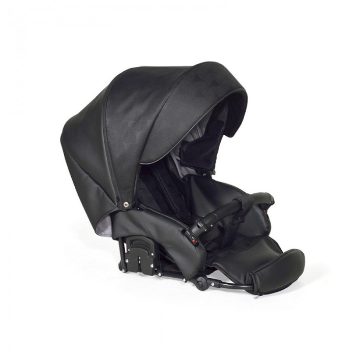 В дно люльки встроена вентиляция, есть окошки на козырьке для пропускания воздуха. Снаружи люлька выполнена из водоотталкивающего материала, который также защищает от солнечных лучей. Прогулочный блок реверсивный, устанавливается в обе стороны. Спинка и подножка регулируются, бампер и пятиточечные ремни обеспечивают безопасность юного пассажира. Складной капюшон с козырьком, а также идущие в комплекте дождевик и москитная сетка защищают ребенка от погодных катаклизмов и насекомых. От ветра защитит чехол на ножки.