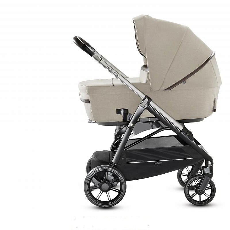 Люлька просторная, самая вместительная в линейке люлек бренда «Инглезина». По этой причине ею можно пользоваться максимально долго. Оснащена матрасиком Welcome Pad из инновационного бамбукового волокна, который гарантирует ребенку правильное положение спинки и комфорт. Шасси с крупными амортизированными колесами отлично подходит для прогулок как в городских, так и в загородных условиях. Сложить и разложить коляску, а также управлять ею можно одной рукой. Ширина шасси дает возможность проходить в любые лифты и дверные проемы.