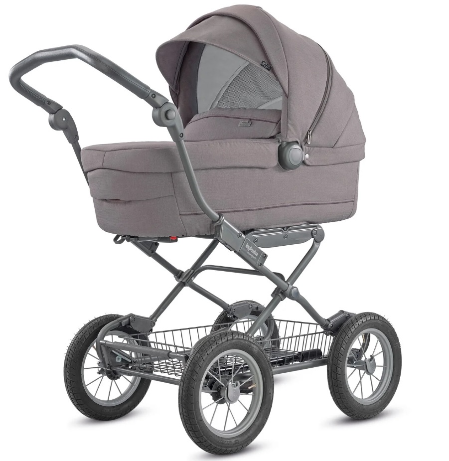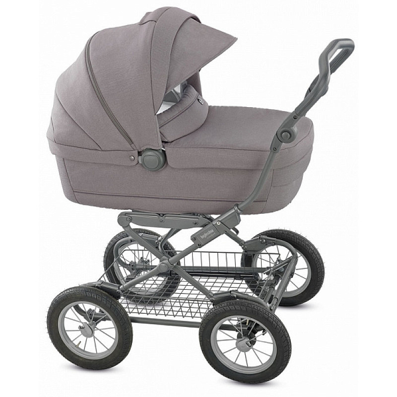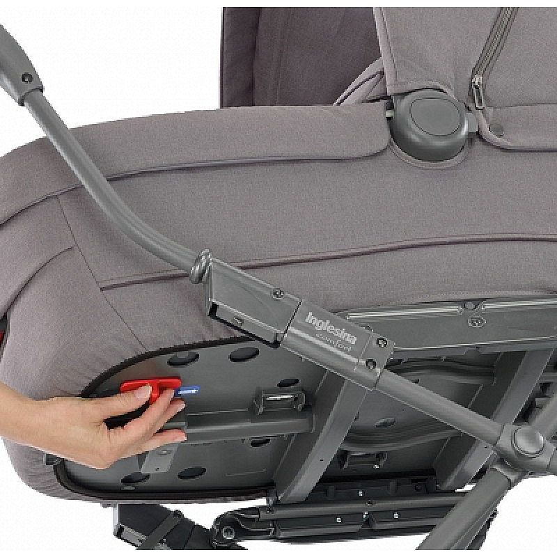 Особенность спального блока итальянской марки Inglesina — возможность перевозить ребенка в люльке в автомобиле. Фиксация происходит с помощью системы Kit Auto. Люлька заменяет автокресло группы 0+. Также у люльки вручную регулируется подголовник. Колеса большие, надувные, обеспечивают коляске плавность при езде по любой дороге. Колеса имеют одинаковый диаметр и не имеют функции свободного вращения у передних. Рама легкая, что нетипично для колясок этого типа, сделана из хромированного алюминия. Ручка регулируется по высоте, вместо текстильной корзины установлена типовая металлическая.