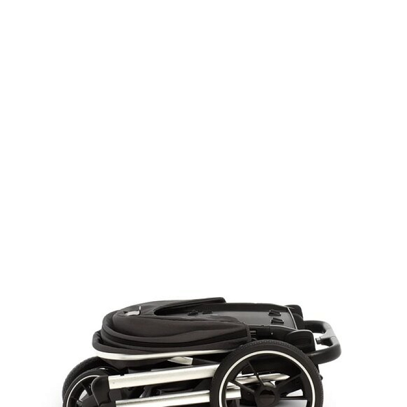 Шасси коляски Moon Style 2 в 1 узкое, всего 56 см. По этой причине коляска спокойно входит даже в узкие лифты. Колеса большие, с амортизаторами, высокой устойчивости. По традиции для колясок немецкого производства колеса сделаны из того же материала, что и автомобильные шины. Передние колеса могут ходить свободно, фиксируются вовнутрь и наружу. Шасси можно сложить вместе с прогулочным сиденьем, установленным в положении по ходу движения.