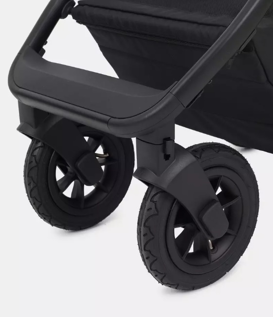 Сменные модули устанавливаются на шасси с помощью системы One Click Move. Блоки покрыты качественной тканью с защитой от влаги и солнца. В коляске Axiom надувные колеса, которые с легкостью преодолевают любые дорожные препятствия. Амортизаторы стоят на всех колесах. Передние колеса свободно вращаются и фиксируются для строго прямого движения.