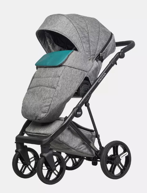 Блоки в коляске Havana снимаются быстро благодаря системе One Click Move. Капюшон бесшумный. Внизу расположена закрытая багажная корзина с жестким дном, которая не провисает под тяжестью продуктов. Колеса инновационные, не прокалываются и не требуют подкачки, поскольку произведены из вспененной резины. Амортизация мягкая, тормоз не пачкает обуви. Чехлы коляски пропитаны специальным веществом, чтобы надежно защитить ребенка от ветра и влаги. В комплект входит сумка для мамы.