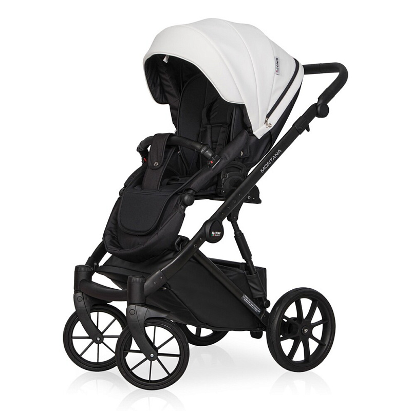 Новинка образца весны 2021 года — модель Rico Basic Montana от польского производителя Riko, полностью покрытая экокожей. Отличается функциональностью, модными расцветками и материалами изготовления высокого качества. Коляска предназначена для прогулок с ребенком от 0 до 3-4 лет, состоит из компактного шасси с гелевыми колесами и трех съемных модулей — спального, прогулочного и автолюльки.