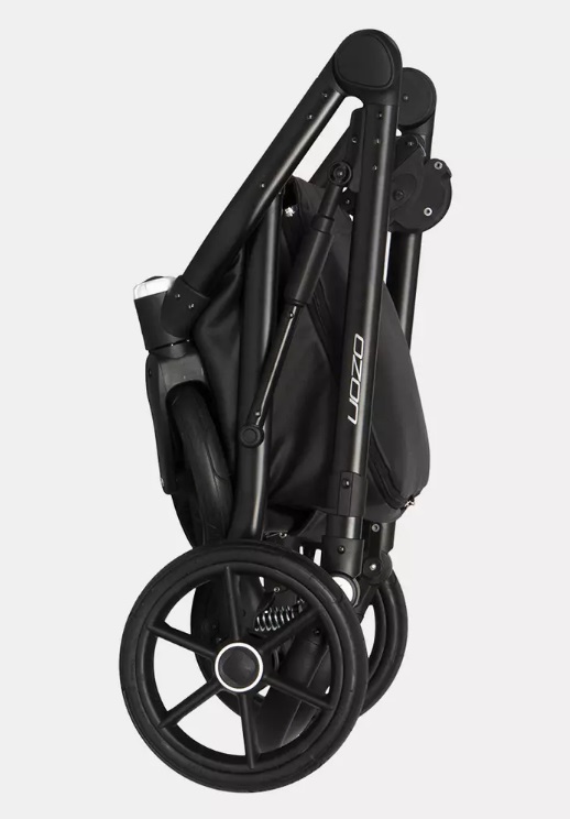 Внизу находится стильная корзина из экокожи, которая закрывается на молнию. В комплект также входят сумка для мамы и дождевик.