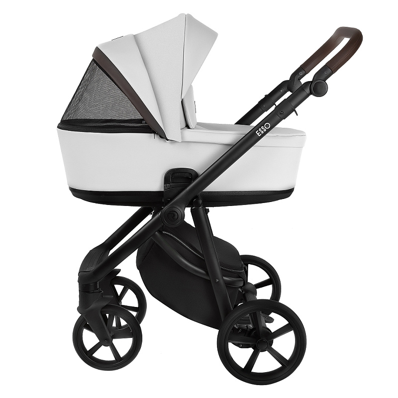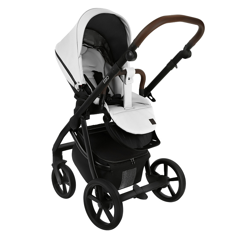 Рама коляски оснащена системой крепления 1 Click с двойной защёлкой, минимизирующей люфт для большей устойчивости. Капюшон люльки с интегрированной ручкой позволяет переносить её ровно, без перекосов, а москитная сетка, скрытая отворотом, и двухпозиционная регулировка добавляют удобства. Накидка на люльку с морозостойким силиконовым окошком на кнопках и магнитах плотно прилегает, защищая от ветра и дождя, и легко открывается для доступа к ребенку. Экокожа придает коляске элегантный вид и упрощает уход, делая её стильным выбором для современных родителей.