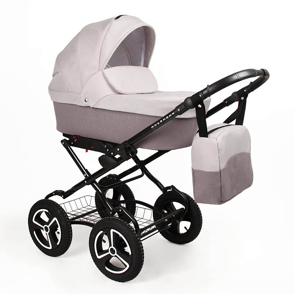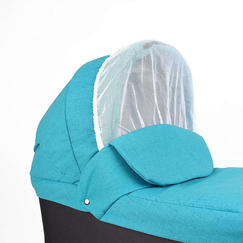Коляска комплектуется сумкой для мамы, сеткой от насекомых и накидкой от дождя.