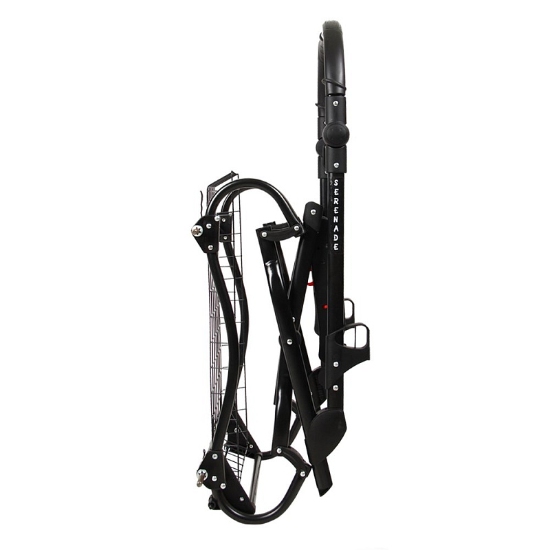 Шасси алюминиевое классическое шасси¶принцип сложения рамы — книжка¶надувные неповоротные колеса¶шарнирная амортизация¶многопозиционная родительская ручка¶ножной планочный тормоз¶багажная корзина в виде металлической сетки.