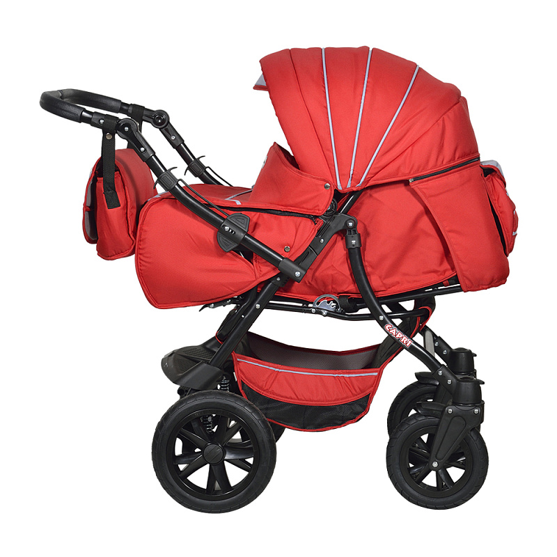Capri PCO снабжена 5-точечными ремнями, регулируемыми по высоте подножкой и ручкой для родителей, большим капюшоном с солнцезащитным козырьком. Есть сумка для мамы, накидка на ножки для катания в прохладное время года, дождевик, москитная сетка. Складывается обновленная «Капри» методом «книжка».