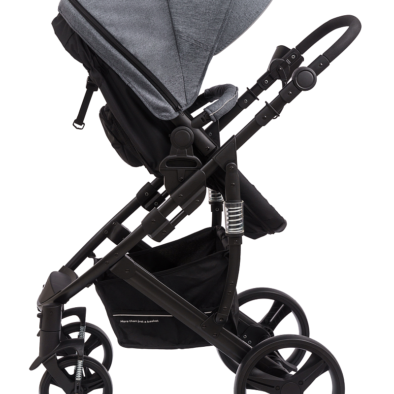 Подножка прогулочного блока регулируется по высоте. В прогулочном блоке также имеются 5-точечные защитные ремни.