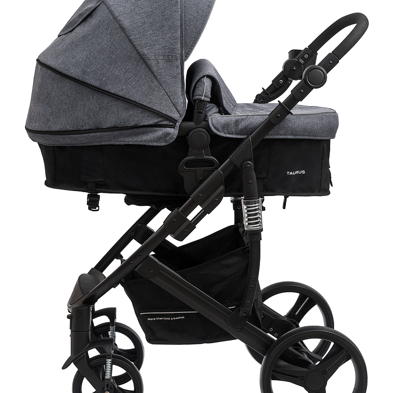 В коляске оборудована вместительная багажная корзина. Для дополнительной маневренности передние колеса могут двигаться свободно или фиксироваться. Задние колеса имеют пружинную амортизацию. В коляске съемный надежный бампер, ручка перекидная. Складывается модель Таурус быстро, раскладывается также быстро, снабжена большим количеством функций и регулировок, который позволяют настроить коляску под свои запросы и потребности ребенка.