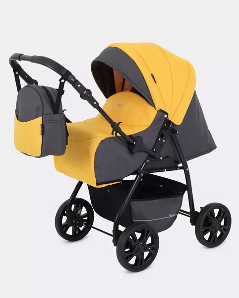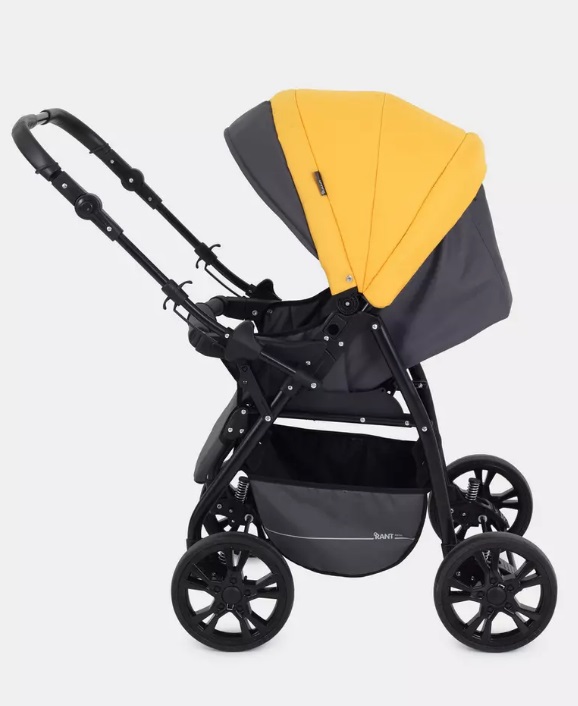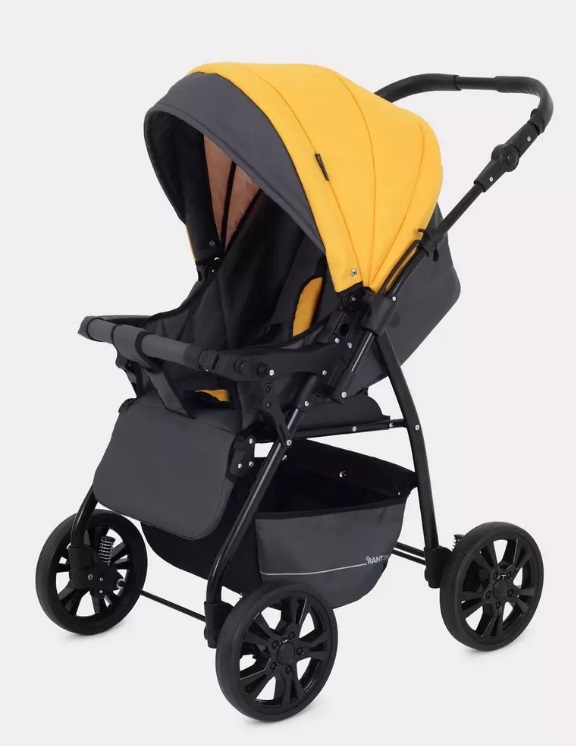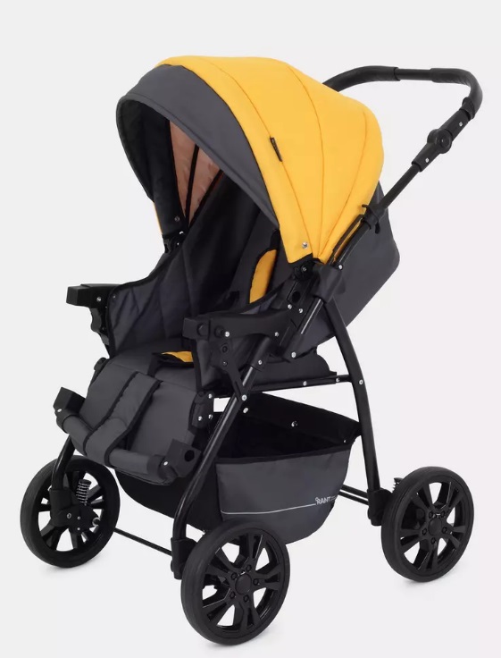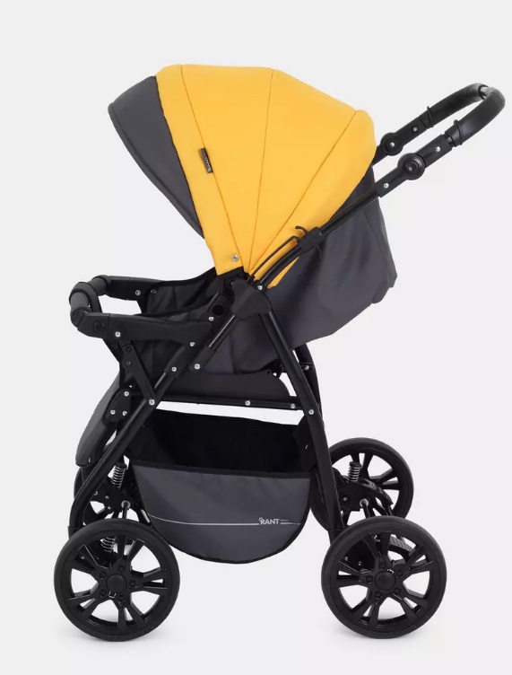 Эргономичная коляска-трансформер от Rant. Выделяется легким весом. Конструкцией предусмотрено, что ребенок до полугода гуляет в переносной люльке, которая устанавливается в прогулочный блок. Также коляска оборудована пружинными амортизаторами, которые сглаживают неровности дороги. Ручка регулируется, чтобы взрослому было удобно управлять коляской.