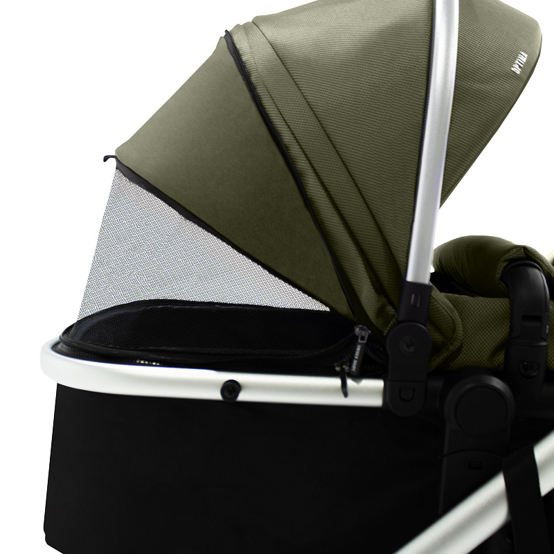 Среди других особенностей модели: раздвижной капюшон с регулировкой в пяти положениях. Покрытие выполнено из ткани, стоит защита от ультрафиолета UPF 50+. У люльки имеется стабилизатор. Есть двойная система вентиляции: в люльке и капюшоне. Для защиты ребенка предусмотрены 5-точечные ремни безопасности. В капюшоне сделано смотровое окошко, чтобы мама могла следить за ребенком. В комплекте есть накидка на ножки.