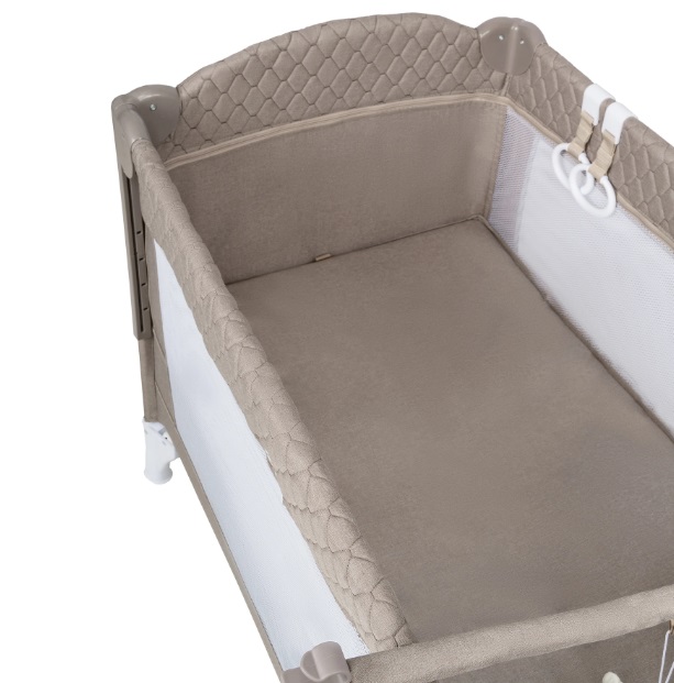 Bon-Bon TOY предлагает универсальную конструкцию 3 в 1, легко трансформируясь из кроватки в манеж или приставную колыбель. Модель устанавливается на маятник для укачивания или на устойчивые ножки, причем маятник можно снять без усилий. Ткань с эффектом льна в нейтральных тонах гармонично вписывается в современные интерьеры, а развивающие игрушки добавляют ценности для родителей, заботящихся о развитии малыша. Компактная сумка для переноски (77 × 21 × 21 см) упрощает хранение и транспортировку, идеально подходят для путешествий или малогабаритных квартир.