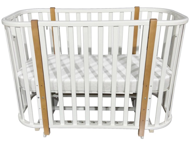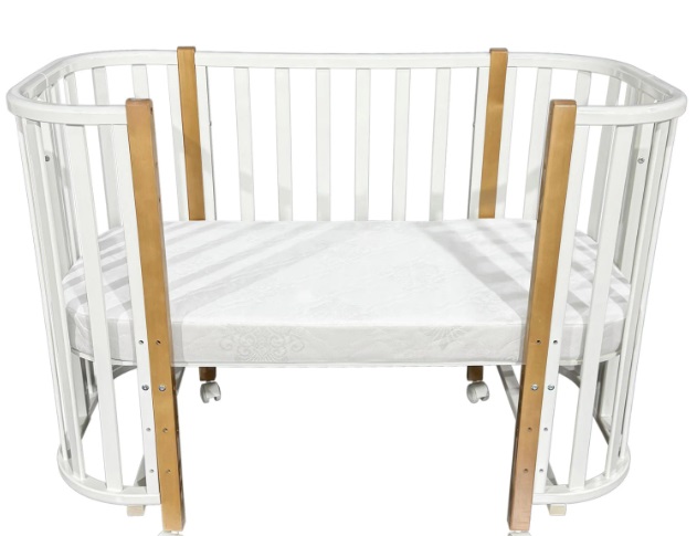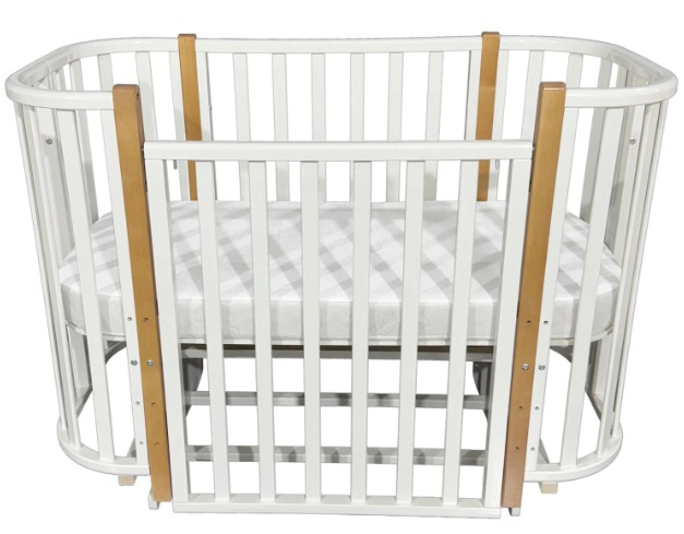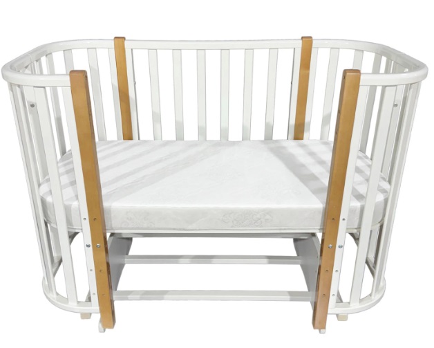Размер спального места стандартный — 120×60 см, что делает кроватку совместимой с любыми детскими матрасами. Вес конструкции составляет 30 кг, при этом она остается прочной и устойчивой.