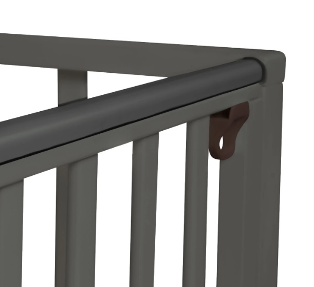 Также в комплекте идут силиконовые колесики с плавным ходом, которые позволяют бесшумно и безопасно для полового покрытия перемещать кроватку по комнате. Кроватка снабжена силиконовыми накладками, которые защищают десны ребенка от повреждений в период активного прорезывания зубов.