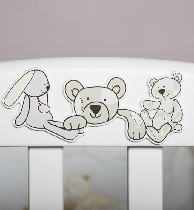 В кроватке есть четыре поворачивающихся резиновых колеса с двумя стопорами. С помощью колесиков кровать можно двигать по комнате и фиксировать в нужном месте. При производстве изделия применялись краски на водной основе, нетоксичные гипоаллергенные лаки. Лакокрасочные материалы благодаря качеству обеспечивают ровное и прочное покрытие, усиливая природные качества древесины.