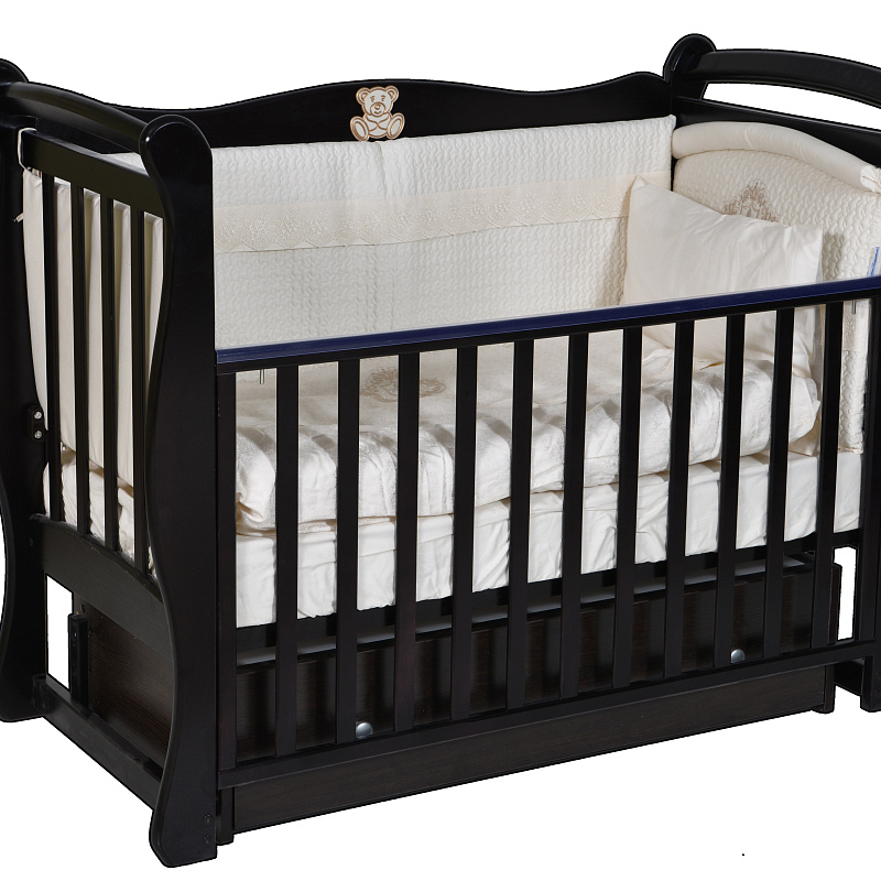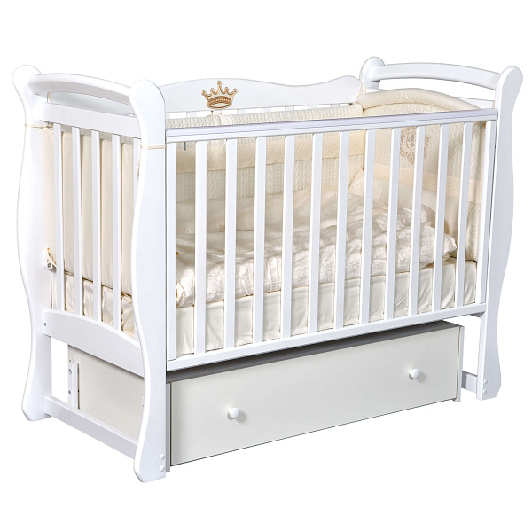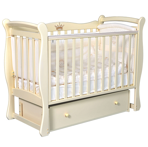 Модель «Виола» 1 — это классическая детская кроватка, сделанная из натурального дерева (березы), оснащенная универсальным маятником. Родители могут украсить кроватку симпатичной аппликацией короны или мишки (докупаются отдельно). Мебель российского производителя покрыта нетоксичным лаком, который не нанесет вреда здоровью малыша и всем обитателям детской комнаты. Дополнительно верхняя часть бортика защищена от повреждений мягкими накладками. Ребенок в период активного роста зубов может спокойно покусывать эти приспособления вместо самой кроватки.