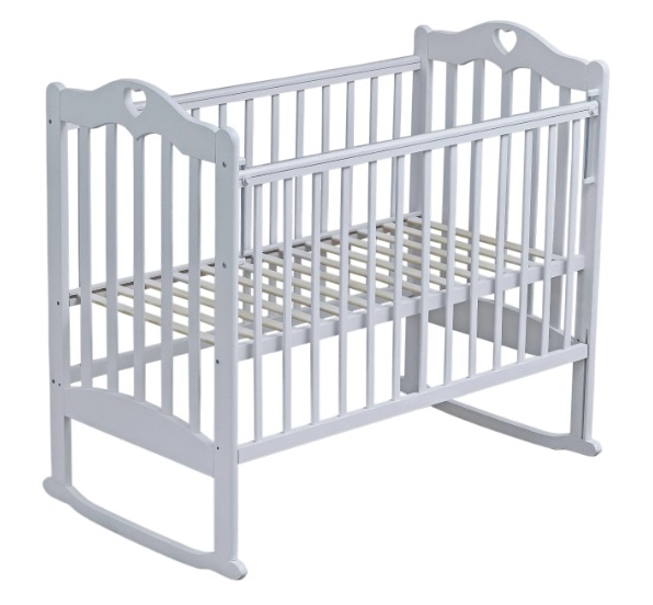 Кроватка №5 сделана из массива березы. Ложе выполнено из ортопедических реек, ложе стандартное - 120x60 см. У спальное основы два уровня по высоте. Кроватку отличают стильные фигурные элементы. В комплект входят ПВХ-накладки на боковых рейках, которые защищают зубы ребенка и продлевают срок службы самого изделия.
