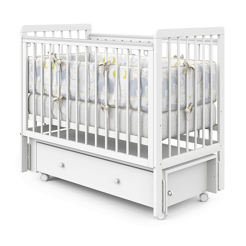 Pituso Tiny (Питусо Тини) – многофункциональная детская кроватка с бельевым ящиком, продольным маятником, колесиками и съемной передней стенкой
