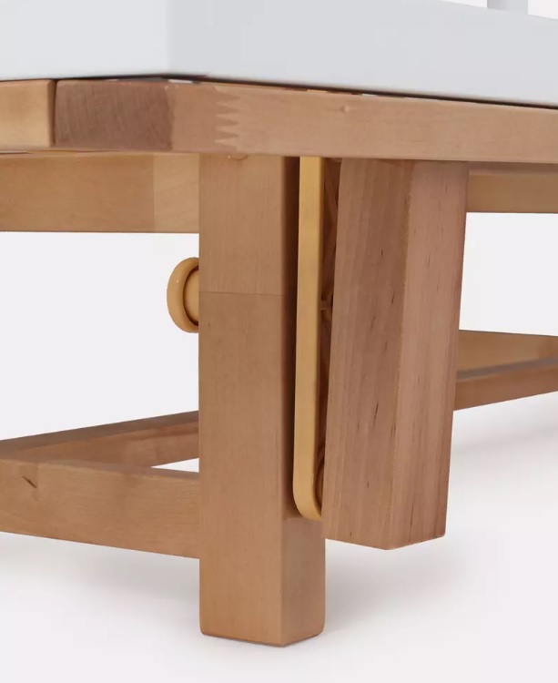 Спальное ложе имеет 6 положений. Верхние позиции — для новорожденных, средние — для тех, кто только начал сидеть, нижние — для уверенно стоящих на ножках. У ложа ортопедические свойства, обеспеченные гнутыми рейками (латофлексом). Матрасик вы можете купить отдельно, в комплект с кроваткой он не входит.