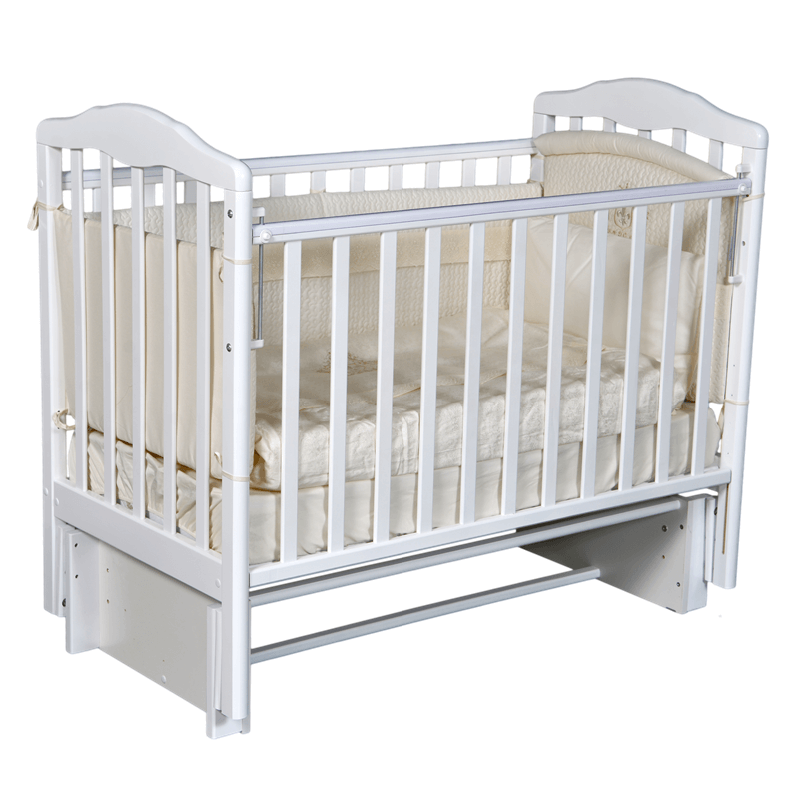 Особенность кроватки — наличие укачивающего механизма — маятника универсального типа. Допускается поперечное или продольное укачивание, все зависит от способа сборки. Также маятник стопорится или полностью снимается. Снимается в кроватке и передняя стенка, имеющая два положения по высоте. Без стенки кровать превращается в детский диван.
