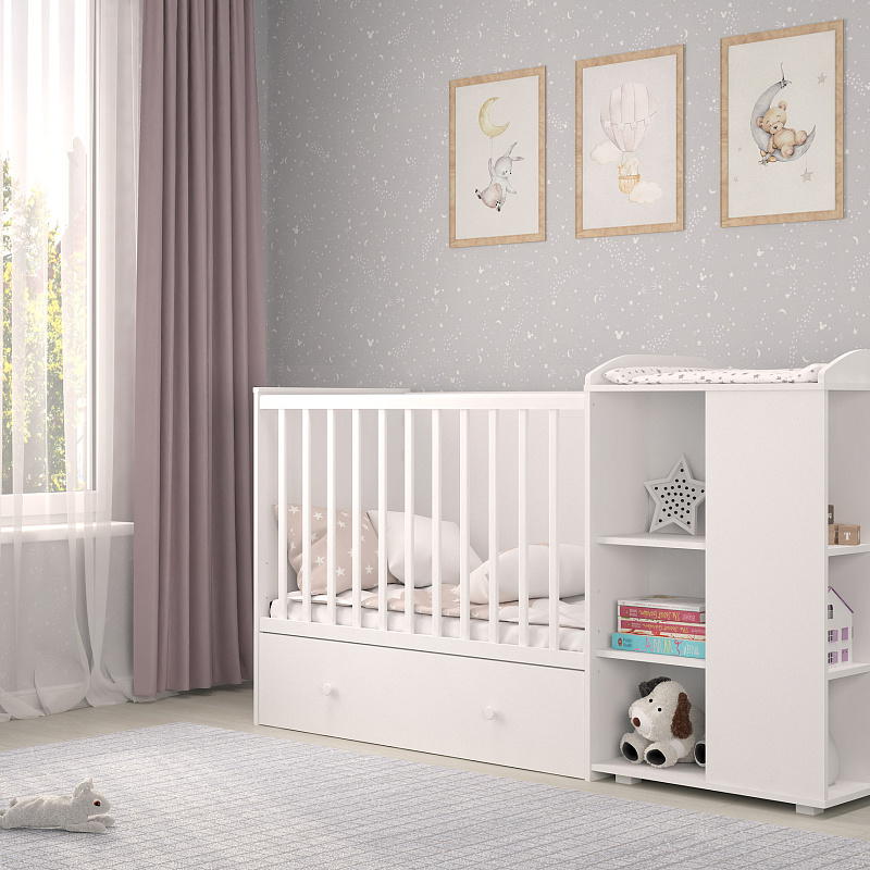 Удобная, многофункциональная и стильная кроватка Polini Kids French 800 будет незаменимым помощником для родителей и подарит малышу здоровый и крепкий сон. Благодаря милому дизайну на фасаде комода и своему элегантному сочетанию классического белого, сдержанного серого и дубово-пастельного цветов кроватка станет украшением любого интерьера.
