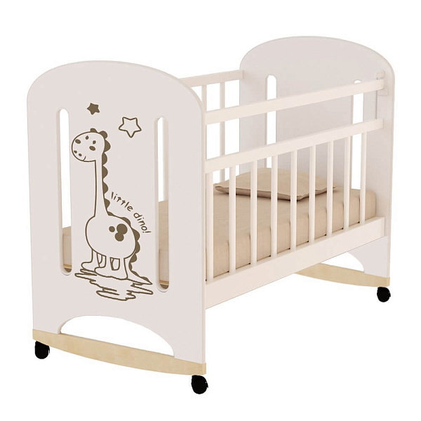 Детская кроватка Dino – это стильная, современная, качественная мебель производства РФ. Выполнена из массива березы и ламинированной ДСП. Предназначена для ребенка с 0 до 4 лет. Оснащена колесиками и простым механизмом укачивания. Как качалку кроватку применяют, когда ребенок маленький. Затем мебель устанавливают на колеса. На левую боковую спинку кроватки нанесен рисунок жирафа. Нейтральные расцветки подойдет под любой интерьер.