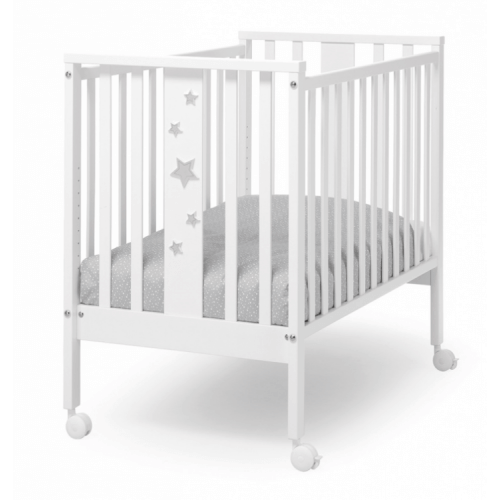 Erbesi Mini Stellina сделана из массива бука. Подматрасник выполнен из некрашенного материала, сама кровать окрашена экологически чистой краской на водной основе. Матрас наполнен кокосовым волокном. Кроватка снабжена четырьмя колесиками и двумя тормозами для фиксации в нужном месте.