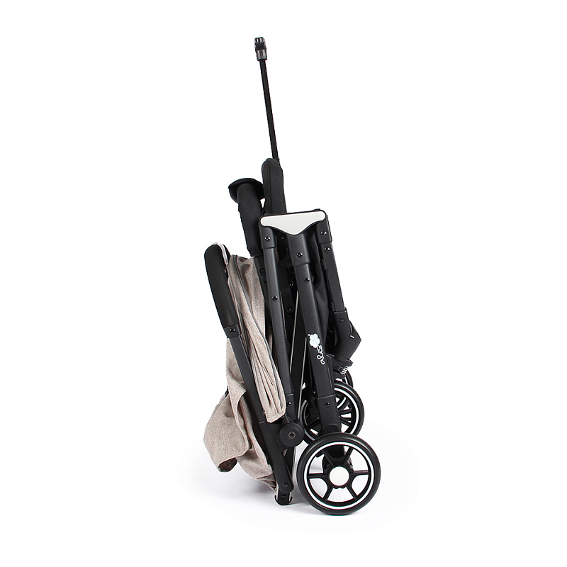 Складывается модель одной рукой, что удобно, если в другой приходится держать ребенка. Колеса в этой коляске легкие, маленькие и очень подвижные, выполнены из пластика. Передние снабжены опцией свободного хода. Из прочих особенностей — смотровое окошко в складном капюшоне, накидка на ножки, подножка с двумя возможными положениями. Бампер съемный, есть 5-точечные ремни безопасности. Внизу находится багажная сетка. Система торможения — центральная.