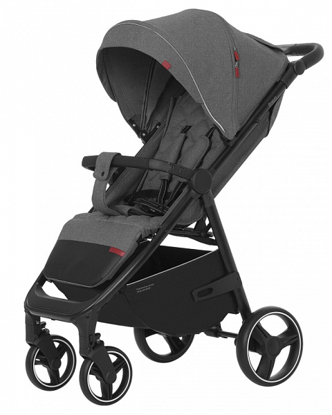 Плюс обновленной версии в более мягком ходе. Амортизаторы стоят на каждом колесе. Ручка для родителей подстраивается по высоте. Характеристика дизайна новой модели — «все в черном цвете». В этой «прогулке» черная рама, черный бампер, черная ручка. Для безопасности ребенка предусмотрены 5-точечные ремни безопасности, разделитель между ножками, надежный бампер. Складывается коляска «книжкой». Комплектуется подстаканником и москитной сеткой.