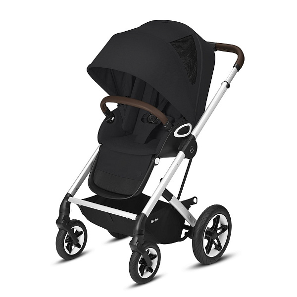 Все четыре колеса оснащены амортизаторами. Передние колеса меньше в диаметре, чем задние, могут свободно вращаться либо фиксироваться. Тормоз на задних колесах регулируется простым нажатием ногой. В комплект с коляской из дополнительных аксессуаров входит только дождевик.