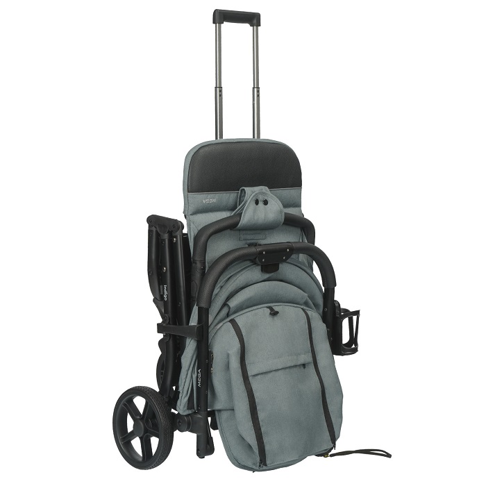 Коляску Мега можно сложить одной рукой буквально в пару движений. Поэтому прогулки для мамы не обременительны: она с легкостью может сложить коляску и проехать несколько остановок в общественном транспорте или отправиться в путешествие на машине, положив коляску в багажник. Также компактность модели Mega помогает подниматься и спускаться по лестнице без лифта. Если же вы задумали дальнюю поездку на поезде или самолете, то коляску можно положить в удобный чехол. Так она не запылится и будет еще более компактной и удобной. Более того, в сложенном виде для удобства транспортировки у коляски Мега выдвигается ручка.