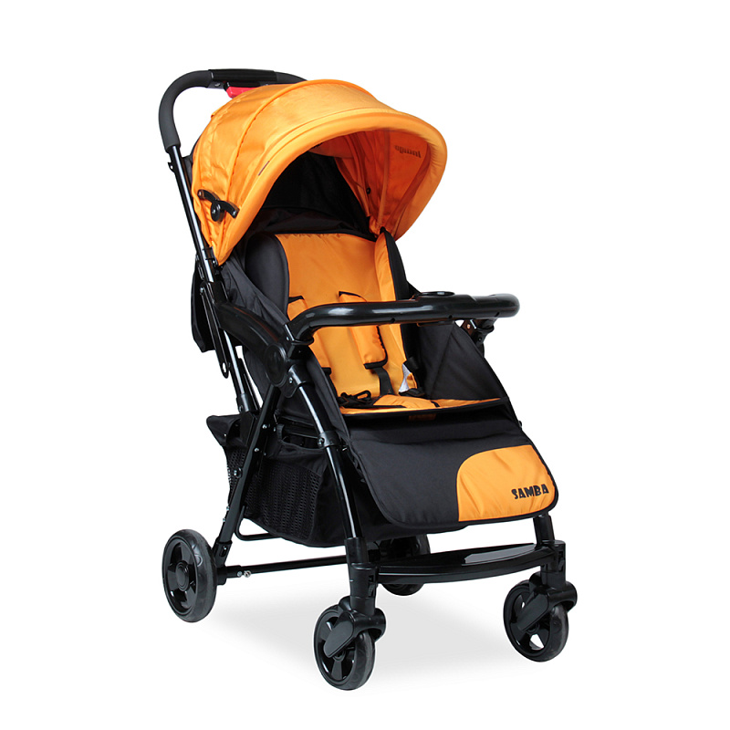 Модель для прогулок с заводным названием «Самба» — это маневренная и яркая коляска, созданная для городских приключений. Подходит малышам от полугода до трех лет, отличается наличием столика-бампера, на котором можно кушать и играть. Отправляться на прогулку юный пассажир может в любом положении от вертикального до почти горизонтального (90-170 градусов).