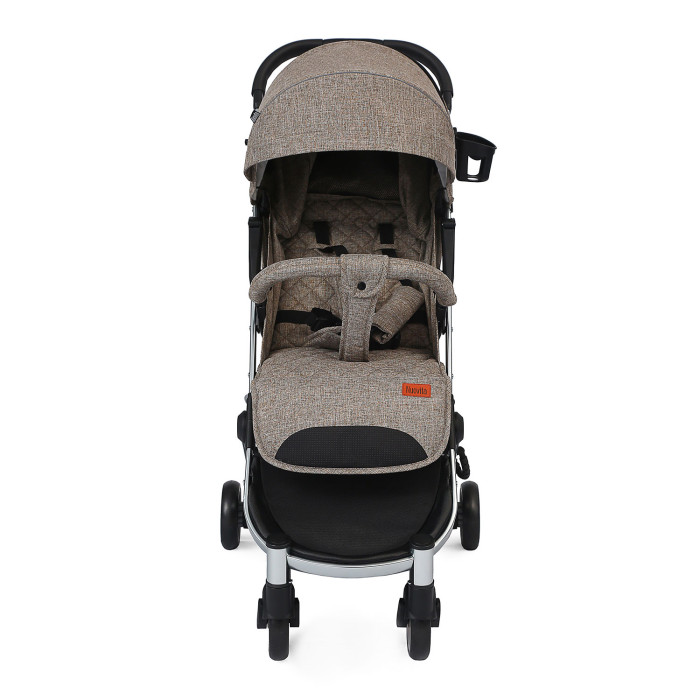 Надежный капюшон ходит бесшумно и регулируется в трех положениях. Увеличение объема происходит за счет солнцезащитного козырька. В капоре есть окошко для вентиляции. Снаружи капюшон и вся коляска покрыты прочной тканью (300 D лен), которая не боится дождя, ультрафиолета, не продувается ветром и при этом легко чистится. Ручка для управления коляской и бампер оснащены практичныи накладками из современной искусственой кожи. В капюшон встроена светоотражающая окантовка.