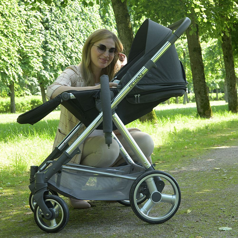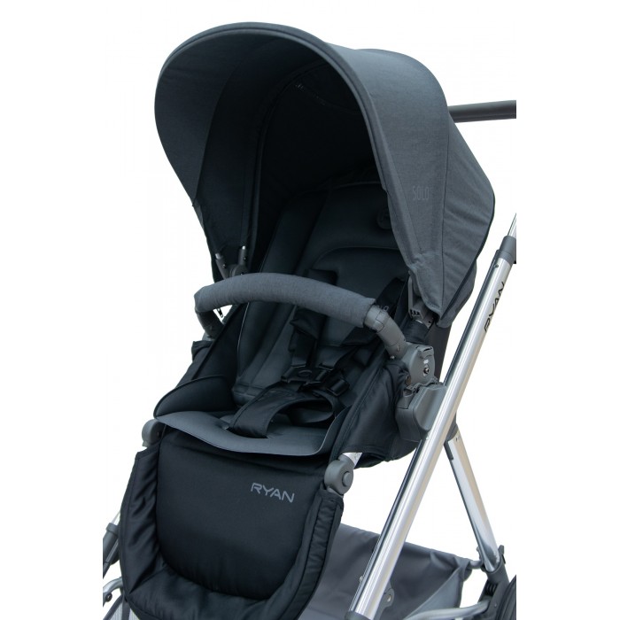 Коляска «Риан Соло» предназначена для малышей от полугода. Использовать ее раньше возможно только в полностью лежачем положении малыша с вкладышем для новорожденного, который есть в комплекте. Всего в коляске 4 уровня наклона спинки, в том числе, разумеется, и полностью горизонтальное положение. Ребенок надежно защищен 5-точечными страховочными ремнями и надежным защитным бампером. Дополнительное средство защиты — надежный капюшон с козырьком, который защищает от вредных ультрафиолетовых лучей солнца и спасает от дождя и снега. В капюшоне встроено смотровое окно на липучке, которое позволяет следить за поведением ребенка во время прогулок. Подножка, как и спинка, регулируемая, есть целых 7 положений. Сама ткань качественная, производства Южной Кореи. Она легко снимается и стирается. Все функциональные достоинства коляски Solo подчеркиваются ярким и стильным дизайном.