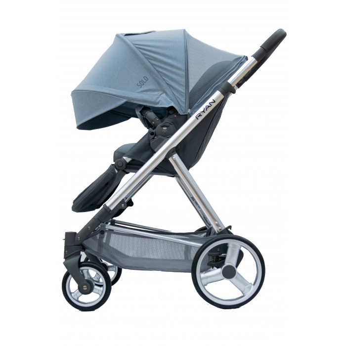 Коляска «Соло» маневренная благодаря большим колесам с функцией поворота у передних и амортизации на всех четырех колесах. Ручка в коляске телескопическая, подстраивается под рост взрослого. Прогулочное сиденье реверсивное, что свойственно обычно модульным коляскам. То есть, родители могут устанавливать сиденье по ходу движения или развернуть малыша лицом к себе. Рама сделана из облегченного алюминия, родителям не составит труда управлять этим транспортным средством даже одной рукой. Внизу находится корзина для вещей с допустимой нагрузкой в 8 кг.