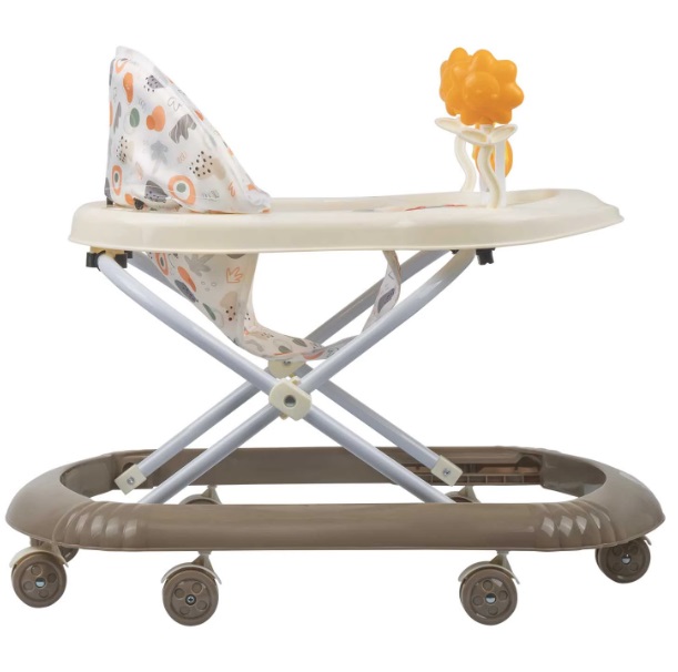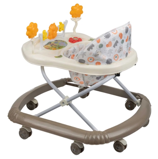 Ходунки оснащены семью колесами, которые обеспечивают стабильное и плавное перемещение по любой поверхности. Четыре уровня регулировки высоты позволяют настроить сиденье под рост малыша, гарантируя комфорт и правильное положение тела. Съемный чехол из водоотталкивающей ткани легко стирается, упрощая уход за изделием.