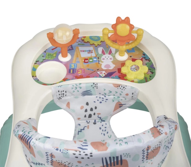 Встроенная игровая панель превращает передвижение в увлекательное приключение. Она включает игрушки, звуковые эффекты и элементы для развития мелкой моторики, слуха и зрения. Удобное углубление для стаканчика или бутылочки позволяет держать напитки под рукой, что особенно практично во время игр или прогулок по дому. Панель разработана с учетом эргономики, чтобы малышу было удобно взаимодействовать с игрушками, развивая хватательный рефлекс и координацию движений.